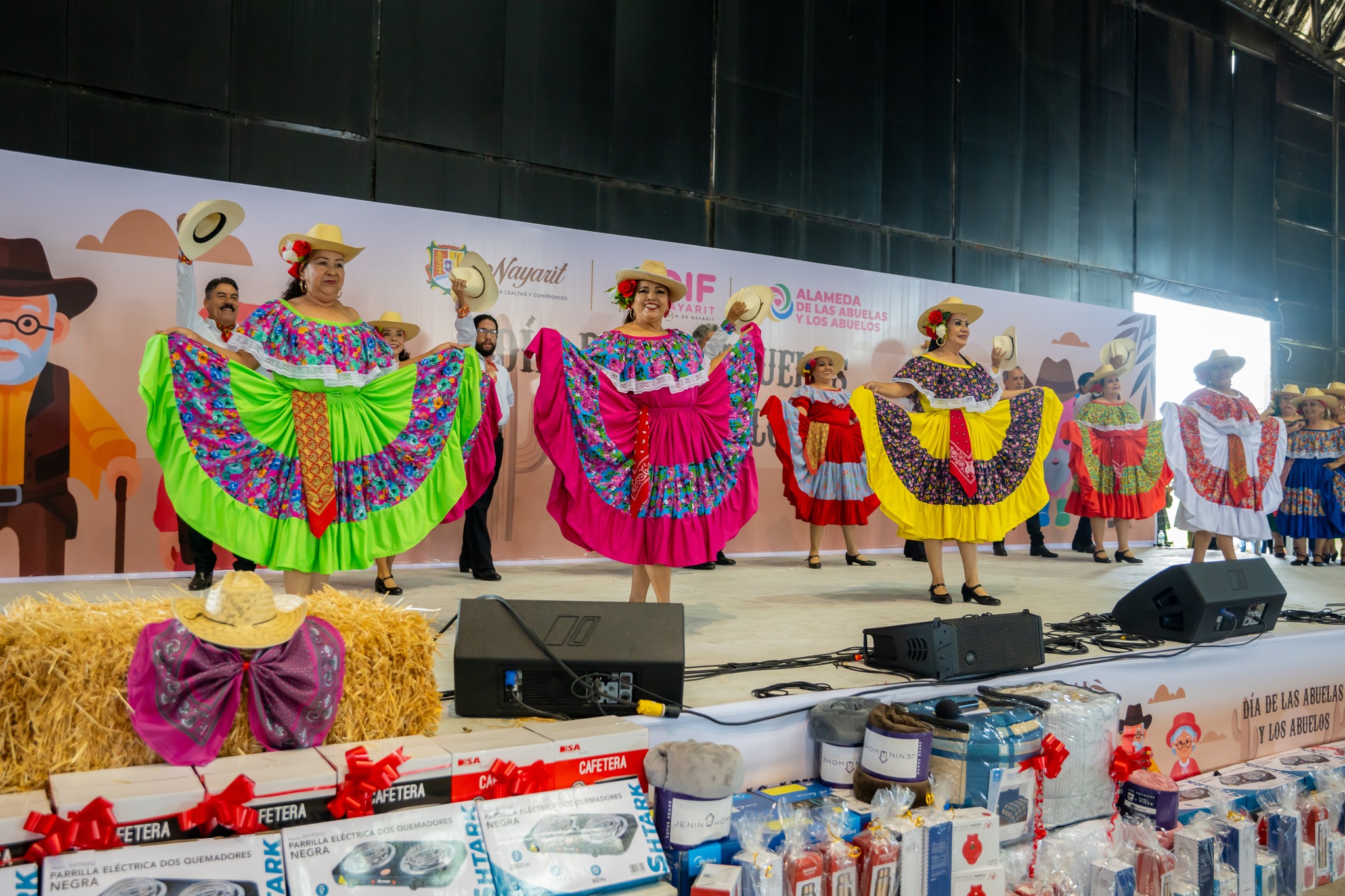 La celebración incluyó la presentación del Ballet Folclórico Nayare, conformado por jubilados de la Normal Superior de Tepic; un ensamble musical de la Alameda de las Abuelas y los Abuelos; la actuación de la Banda Sinfónica del Estado, así como la tradicional rifa de regalos como electrodomésticos y utensilios para el hogar. Además, se compartieron alimentos en un espacio alegre y digno, donde las y los adultos mayores fueron los protagonistas de la fiesta.