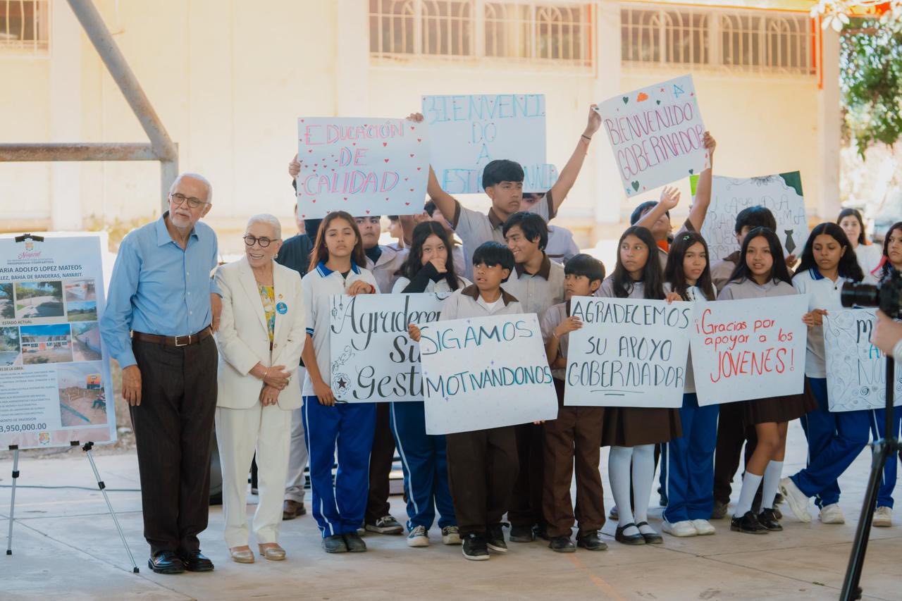 Otorgar mejores espacios educativos es apostar por el desarrollo y el bienestar de la juventud. Con esta convicción, el gobernador del estado, Miguel Ángel Navarro Quintero, acompañado de su esposa, la presidenta del Sistema DIF Nayarit, doctora Beatriz Estrada Martínez, encabezó el arranque de obra en la Secundaria Adolfo López Mateos, en la localidad de Mezcales.