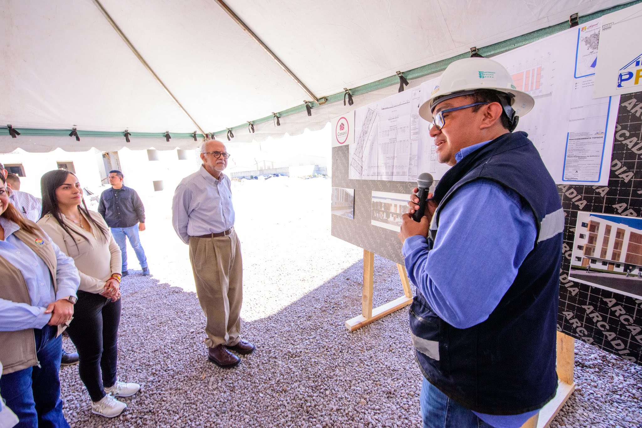El gobernador del estado, Miguel Ángel Navarro Quintero, recibió al director general de la Comisión Nacional de Vivienda, Rodrigo Chávez Contreras, y junto a sus equipos de trabajo recorrieron el proyecto habitacional “Topacio”, en la zona de La Cantera, en Tepic.