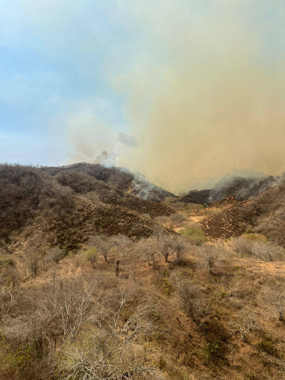 El Gobierno del Estado, a través de la Secretaría de Seguridad y Protección Ciudadana y en coordinación con instancias federales y municipales, mantiene acciones permanentes para el combate del incendio forestal en la zona de La Cruz de Huanacaxtle.